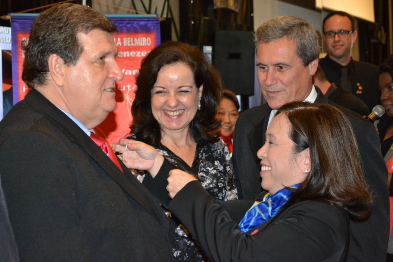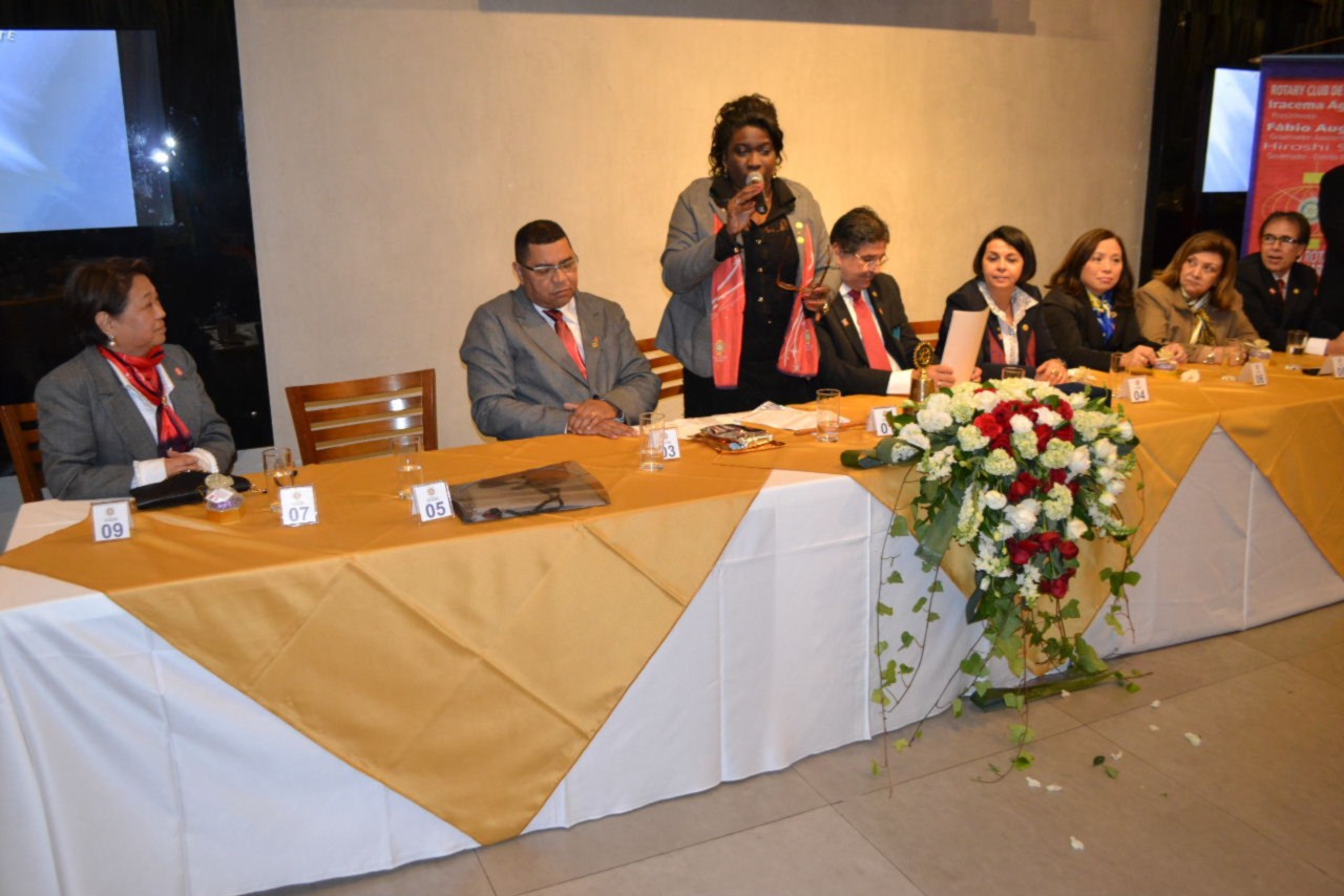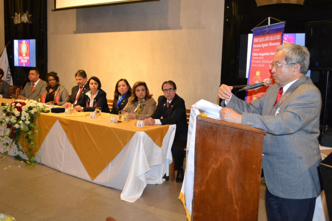 A noite festiva contou com a presença do casal governador Hiroshi e Suma Shimuta que deixou sua mensagem cheia de alegria e reflexão, pedindo a todos os presentes que façam o Rotary Brilhar neste ano rotário. O governador parabenizou o clube e ressaltou a importância das palavras proferidas pela presidente Iracema que expôs sentimentos em sua mensagem que ele considerou digna de ser apreciada por todos os rotarianos.