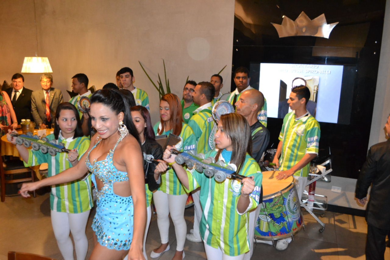 Para completar a festa, a presidente Iracema apresentou a Bateria Jovem da Escola de Samba Unidos dos Morros, que brilhou na festiva, contagiando os convidados e o casal governador, com a alegria que inspira o ano rotário brilhante e os rotarianos do Distrito 4420 na gestão 2014-2015.