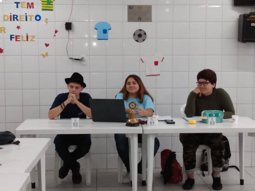 Reunião do nosso Interact Vila Belmiro, com a visita do Interact Guarujá, intercambistas do México, Japão e Dinamarca, e posse de duas novas sócias.